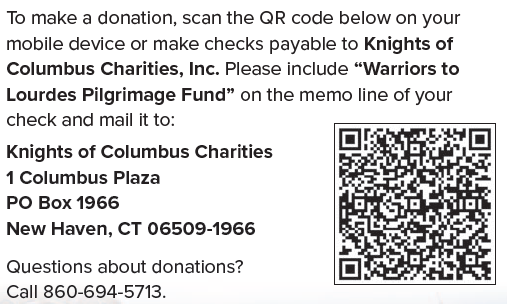If you know a Warrior who wishes to apply to join or would like to volunteer as a companion for the pilgrimage, please visit the Warriors to Lourdes website www.warriorstolourdes.com and fill out the 2026 Warrior to Lourdes Application by January 15, 2026.