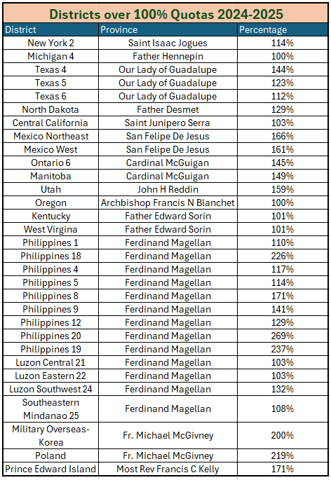 Please join us in recognizing the Top Districts in the Order on achieving 100% of their intake quotas.