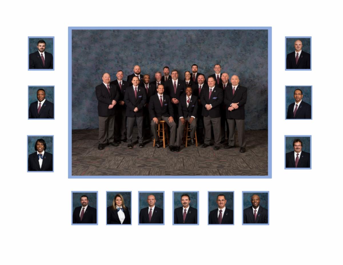Michael Mosier – Old Dominion Freight Line, Kevin Davis – Ozark Motor Lines, Lamar Ball – HUB Group Trucking, Eddie Lindsey – Big G Express, John Henderson – TCW, Josh Johnson – Titan Transfer, Jamie Sowder – FedEx Freight, Jeff Coffey – Old Dominion Freight Line. Third Row L to R: Rick Bennett – FedEx Freight, Wayne Covely – Walmart Transportation, David Pugh – UPS Freight, Rick Tetreault – Averitt Express, John Tetreault – Averitt Express, Steve Bowar – Titan Transfer, Matt Neary – McKee Foods Transportation. Individual pics around group, Left -top to bottom, John Anderson - TCW, Inc, Vernon Brewer - UPS, Donna Wheeler - Old Dominion Freight Line. Right - top to bottom, Devin Rackley - Averitt Express, Ken Wheeler - Old Dominion Freight Line and David Gooch - Sharp Transport. Bottom, L to R, David Brady - Old Dominion Freight, Paula Harper - FedEx Freight, Robert Moxley - Titan Transfer, Tony Ellison - FedEx Freight, Eddie LeSueur - Skyline Transportation and Carl Johnson - McKee Foods Transportation.