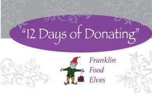 The Franklin Food Pantry announces Food Elves 2022. This year the Franklin Food Elves “12 Days of Donating” Campaign runs from Dec. 1 to Dec. 12.