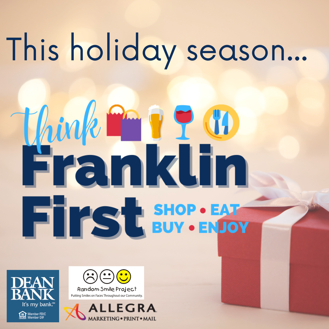 Gift giving season is approaching! Looking for the perfect gift? How does one card with countless possibilities sound? With over 40+ local participating businesses, shopping and gifting local just got a whole lot easier. Buy a Think Franklin First Gift Card today in person at Dean Bank in Franklin or online here.
