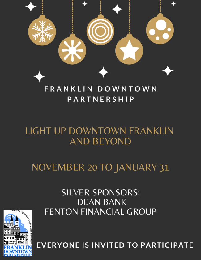 The Franklin Downtown Partnership is asking businesses to illuminate and decorate during the holiday season to make the area especially inviting to holiday shoppers. Click here to see a few decorating ideas.