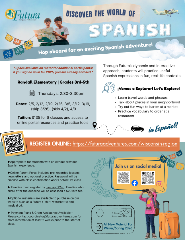 Interested in your student learning Spanish in 2026? If you missed fall enrollment, we currently have limited spots available for registration.