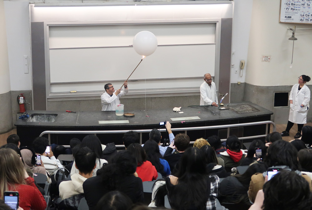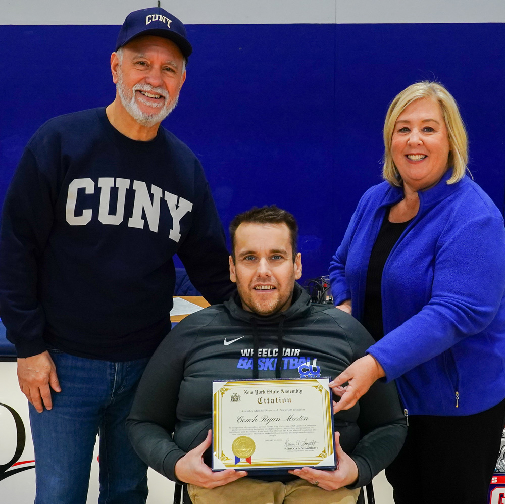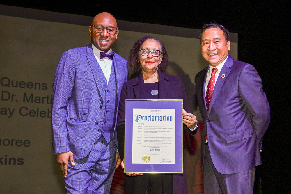 | | Frank Wu along with Gerald Cannon and his sons Caleb & Gabriel during the President’s recent visit to the Child Development Center for Storybook Time. Seargent Cannon is a US Army Veteran, a Student-Parent and Volunteer with Veterans Services on campus. | That afternoon, the School of Mathematics & Natural Sciences hosted a party in Remsen 3000. | | Three days later, the Department of Chemistry & Biochemistry held its own holiday fete . . . . | | . . . and students presented their work during the Voices of NY Undergraduate Research Symposium on Language held in the Dining Hall Patio Room. | Gail Marquis ’80, a basketball star at QC, was part of the U.S. team that won a silver medal in Montreal in 1976, when women’s basketball made its Olympic debut. Gail played for pro teams at home and in France, worked as an analyst for the NBA and WNBA, and enjoyed a long career in brokerage, finance, and banking. Devoted to her alma mater, she spent years serving on the Queens College Foundation (QCF) and emceed several of the college’s fundraising galas. Gail stepped down from the QCF, and I had the distinction of honoring her as a foundation emerita on December 19, in the presence of her wife, Audrey Smaltz, and my wife, Carol Izumi. | From left: Audrey Smaltz, Gail Marquis, yours truly, and Carol Izumi. | Winter Session wasn’t the only event bringing people here in January. | On Tuesday, January 6, hundreds of high school science students and their teachers turned out for the 28th annual Thomas Hayden Chemistry Demo Show. This exciting QC tradition honors the memory of a chief college laboratory technician who served the college and the department for 40 years. | QC’s commitment to diversity emphatically includes people with disabilities. On January 10, the college once again hosted the CUNY Adaptive Basketball Tournament. Chancellor Félix V. Matos Rodríguez, Interim Executive Vice Chancellor and University Provost Alicia Alvero, and Assemblymember Rebecca Seawright attended the tourney, when the CUNY squad prevailed over a team from the University of Michigan. As an alum of Michigan’s law school, I had divided loyalties, but that’s another way of saying that I couldn’t be displeased with the outcome, either way. | L to r: Chancellor Félix V. Matos Rodríguez, Coach Ryan Martin and Assemblymember Rebecca Seawright | The Queens County Farm Museum is a wonderful borough institution and a supportive college partner. During its annual holiday drive, the farm collected donations for the Knights Table Food Pantry. More than 500 items were delivered to campus on January 12. | I welcomed personnel from China’s Wuhan Institute of Design and Sciences (WIDS) to campus on January 13—the institute’s second visit. Among WIDS’ nine colleges are schools for business, environmental design, fashion, film, and nursing. | From left, front row: WIDS Director of International Affairs Nelly Hu Huo, WIDS Chairman and Co-founder Frank Cheng Fan, yours truly, Yin Mei Critchell (Dance) Back row: Dan Liu (Computer Science student), Director of WIDS Innovation Hub Lisa Tu (Linguistics), WIDS Board Member David Cheng, Meghan Healey (Drama), WIDS Co-founder and Board Director Wennie Bin Cheng, Director of Long Museum of WIDS Frank Wei, Dean of Jackie Chan Film and Media School Yang Heng, Vice-Director of International Affairs Edward Zhang, Film Director and faculty of Jackie Chan Film and Media School Haishan Bao | An inspiring time was had by all on Sunday, January 18, at the Reverend Dr. Martin Luther King, Jr. Day Celebration in Goldstein Theatre. Queens Borough President Richards reprised his role as co-host. QC’s Reverend Dr. Martin Luther King Jr. Award was presented to activist and Emmy-winning broadcast journalist Carol Jenkins, founder of the CUNY TV program “Black America,” who gave the keynote. A highlight of recent MLK celebrations has been the debut of episodes in the Office of Communications and Marketing’s original docuseries Legacy Connection: QC & Reverend Dr. Martin Luther King Jr. - YouTube. The latest video, “Rooting for Seek”, covers the creation of the Percy Ellis Sutton Search for Education, Elevation and Knowledge (SEEK) Program—marking its 60th anniversary this year—and its roots in the civil rights movement. In the musical segment, the Tyreek McDole Quintet performed compelling repertoire rooted in Black American music. Special thanks to Dean of the School of Arts and Interim Chief Librarian Simone Yearwood, Dean of Diversity and Chief Diversity Officer Jerima DeWese and the MLK Celebration Planning Committee. (Coverage: QNS l Caribbean Life) | Donovan Richards, Carol Jenkins, Frank Wu | The Global Student Success Program (GSSP) saw the arrival of its first Queens College cohort in January 2020. Since then, more than 700 students have come here from overseas to continue their education. I was delighted to speak to newcomers at their student orientation in the Patio Room on January 22. | The Modern Greek and Byzantine Center, founded in 1974, promotes scholarship and connects it to the needs of the local Greek community. On Wednesday, January 28, I met with its interim director, Fevronia Soumakis, for coffee and heard about the center’s plans for this year. | L to R: Prof. Arnold Franklin, Dean of Faculty and School of Arts and Humanities Simone Yearwood, President Frank H. Wu, Interim Director of the Greek Center Fevronia Soumakis, Dean of School of Business Carmen Cotei, Prof. Karen Weingarten, Associate Provost for Academic and Faculty Affairs and Graduate Studies Maria DeLongoria | I had the pleasure of meeting with Queens County elected officials and leaders from fellow CUNY schools in Queens at the 2026 Queens Legislative Breakfast at LaGuardia Community College on January 30. Together with CUNY vice chancellors, all the presidents advocated budgetary improvements needed from the state and city to strengthen support for public higher education in 