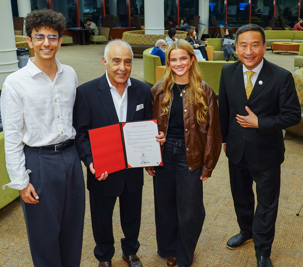 Generosity is contagious. That’s the story behind the dedication of the Freda and Mehran Soroudi Commons in Rosenthal Library on Wednesday, October 29.