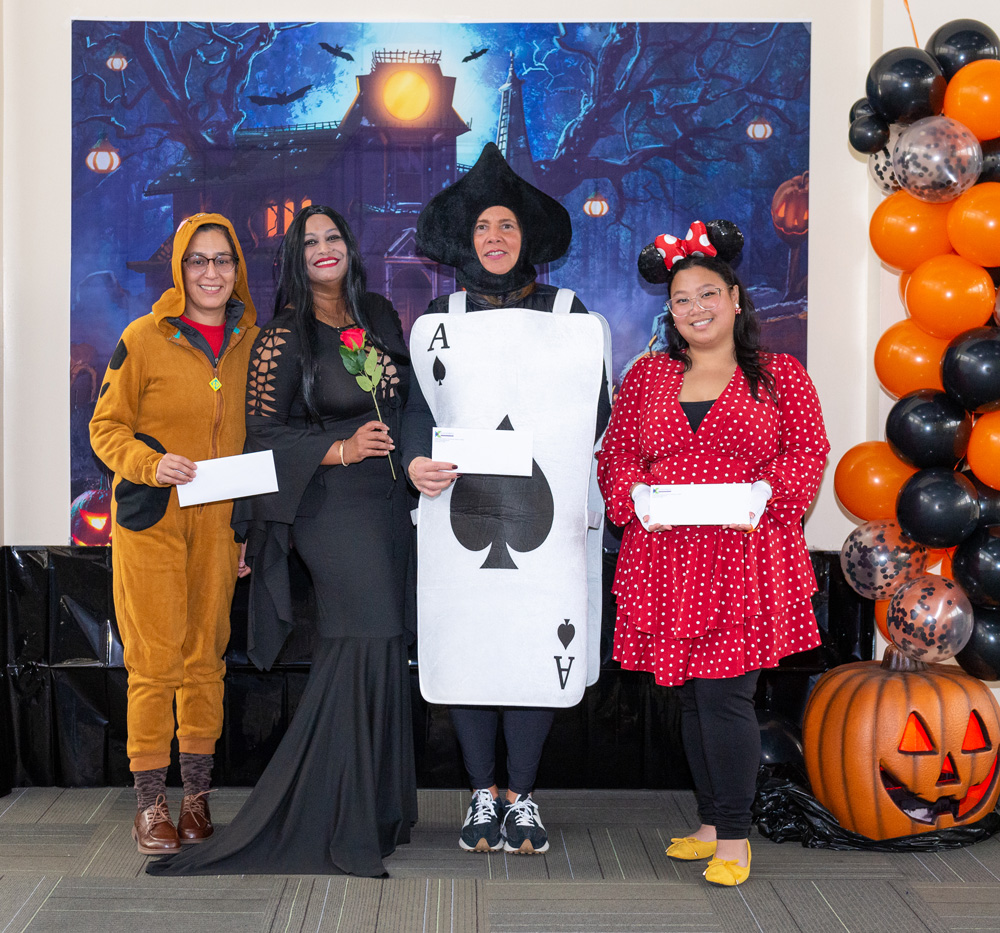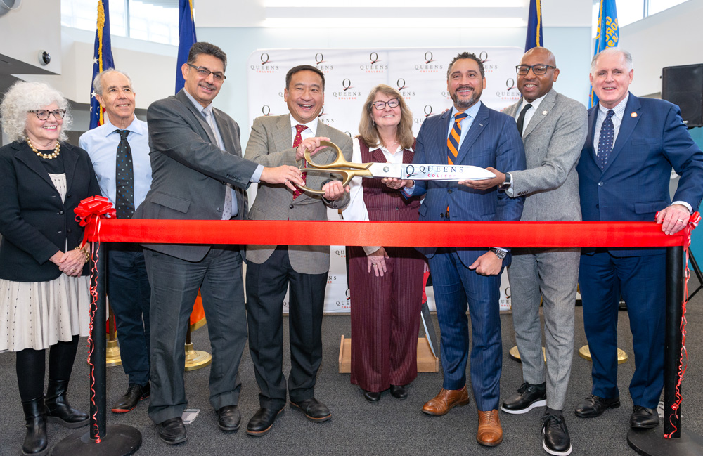 | Students Ziv Nachshon and Scarlet Adams with Mehran Soroudi and me | | On Thursday, October 30, Queens Borough President Donovan Richards, New York State Dormitory Authority President Robert D. Rodriguez, New York City Council Member James Gennaro, and CUNY Vice Chancellor for Facilities, Planning and Management Mohamed Attalla joined faculty, student and alumni speakers in cutting the ribbon for the reopening of the wonderfully renovated Gertz Hall, which houses the college’s Speech Language Hearing Center. For many decades, the center has filled two critical needs: It prepares graduate students to become speech language pathologists and provides clinical services to community members with communication disorders. Among other improvements, the renovations created additional space and treatment rooms, enabling the center to remain a nationally recognized, competitive and highly sought-after facility. | From left: Sima Gerber (Linguistics and Communication Disorders); Michael Newman (Linguistics and Communication Disorders); CUNY Vice Chancellor of Facilities Planning, Construction and Management Mohamed Attalla; me; Patricia McCaul (Linguistics and Communication Disorders); Dormitory Authority of the State of New York President and CEO Robert Rodriguez; Queens Borough President Donovan Richards; New York City Council Member James Gennaro | Dressed in their Halloween best, faculty and staff participated in a costume contest presented by Public Safety on October 31 in the Muyskens Conference Room. Congratulations to the winners Ginna Neira (Athletics), Providenza Anteri (Buildings and Grounds), and Nikki Siapno (ITS). | Public Safety’s Hemwatie Seusarran (in black dress) got in the picture with (from left) Ginna Neira, Providenza Anteri, and Nikki Siapno. | | Good luck to both our men’s and women’s soccer team in this week’s East Coast Conference (ECC) playoffs. The men’s soccer team finished first in the ECC standings with a record of 12-3-3 (6-0-2 ECC) and will have a bye into the semifinals, which will take place on Saturday, November 8 at 7 pm. QC will host the winner of the University of the District of Columbia and Mercy University match. I hope to see you on the pitch Saturday night supporting our Knights! | | |