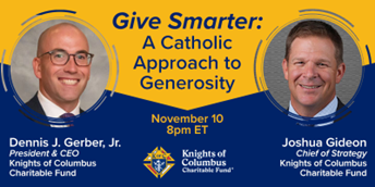 Are you missing opportunities to maximize your charitable giving? You’re invited to a free webinar with Knights of Columbus Charitable Fund (KCCF) titled “Give Smarter: A Catholic Approach to Generosity” on Nov. 10 at 8 p.m. EST!