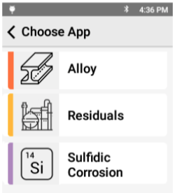 Alloy app: General PMI/NDT of a broad range of alloying materials. Residuals app: Finely tuned for Cr, Cu and Ni concentrations, and the latest requirements for Nb and V being < 0.02%. The unit displays residuals formula and alerts based on the 0.12% or 0.15% threshold level for easy operator interpretation. Sulfidic Corrosion app: Dialed in for low Si in steels, including operator notification of Si levels above or below the critical 0.1% level. Read more about one-click apps for PMI.