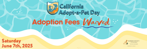 We’re offering FREE ADOPTIONS at both of our shelters on Saturday, June 7th! As part of the second annual California Adopt-a-Pet-Day, along with more than 150 shelters and rescues statewide!