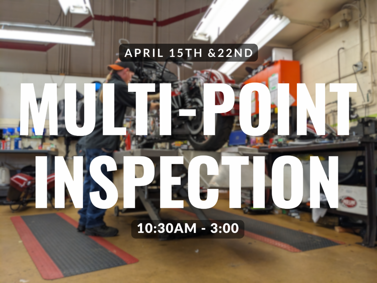 April 15th and 22nd we will be offering a FREE 34 point inspection. Inspecti0ns will take place starting at 10:30am until 3:00pm. Sign up the day of the event on a first come first basis. Our bike appraiser will also be on site offering appraised bike values at no charge.