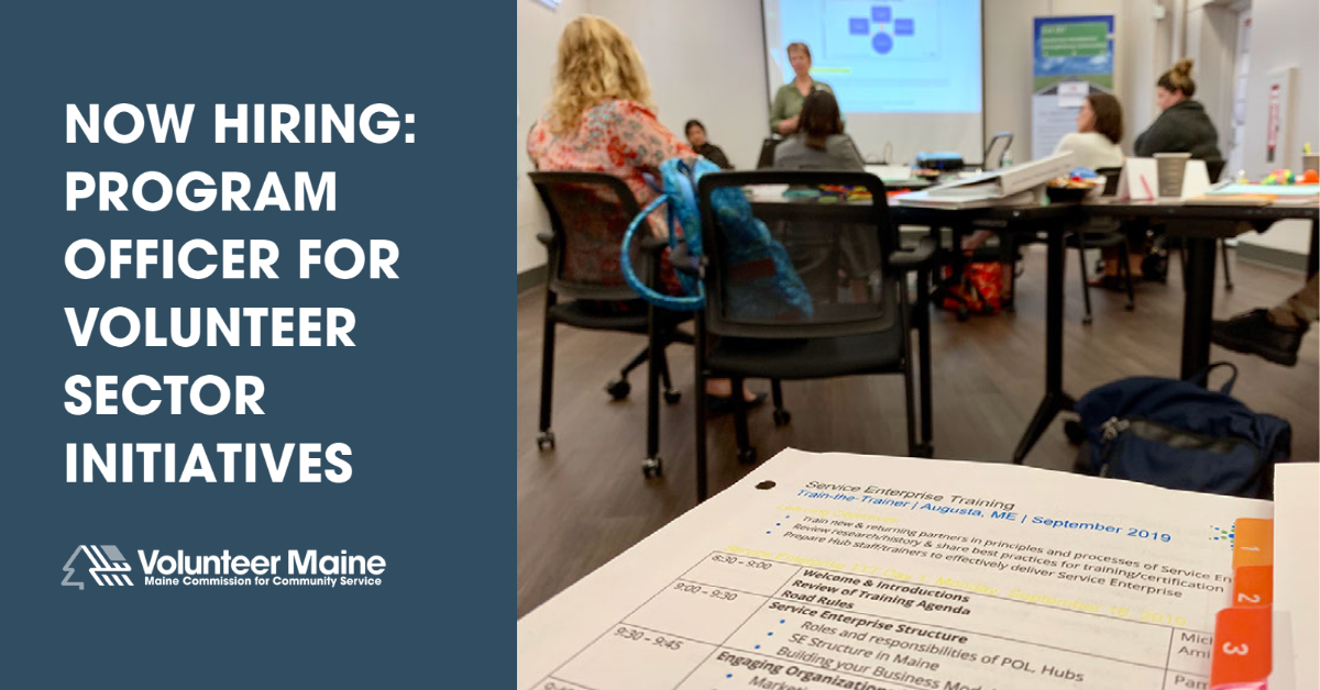 Can you take our training and support to community volunteer programs to the next level? If so, come join our team! Apply by Oct. 13 -- access the application on the State of Maine HR page here.