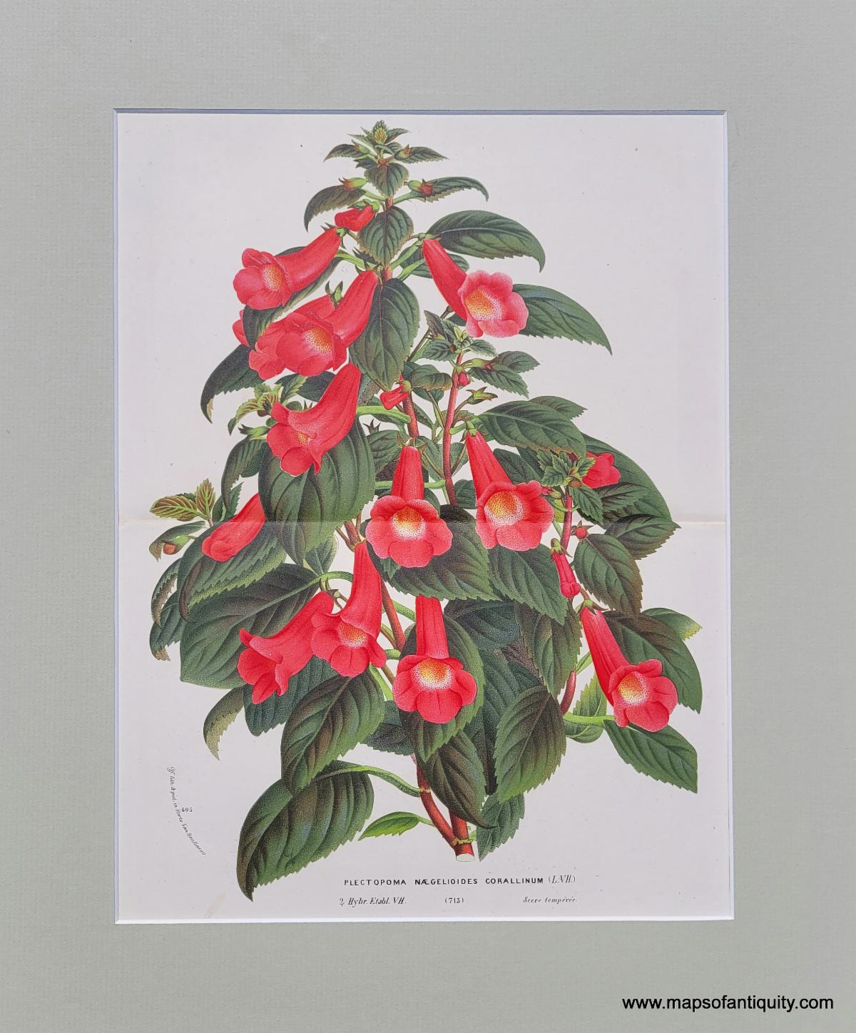 1870 - Tree gloxinia - Plectopoma Naegelioides Corallinum - Antique Print
