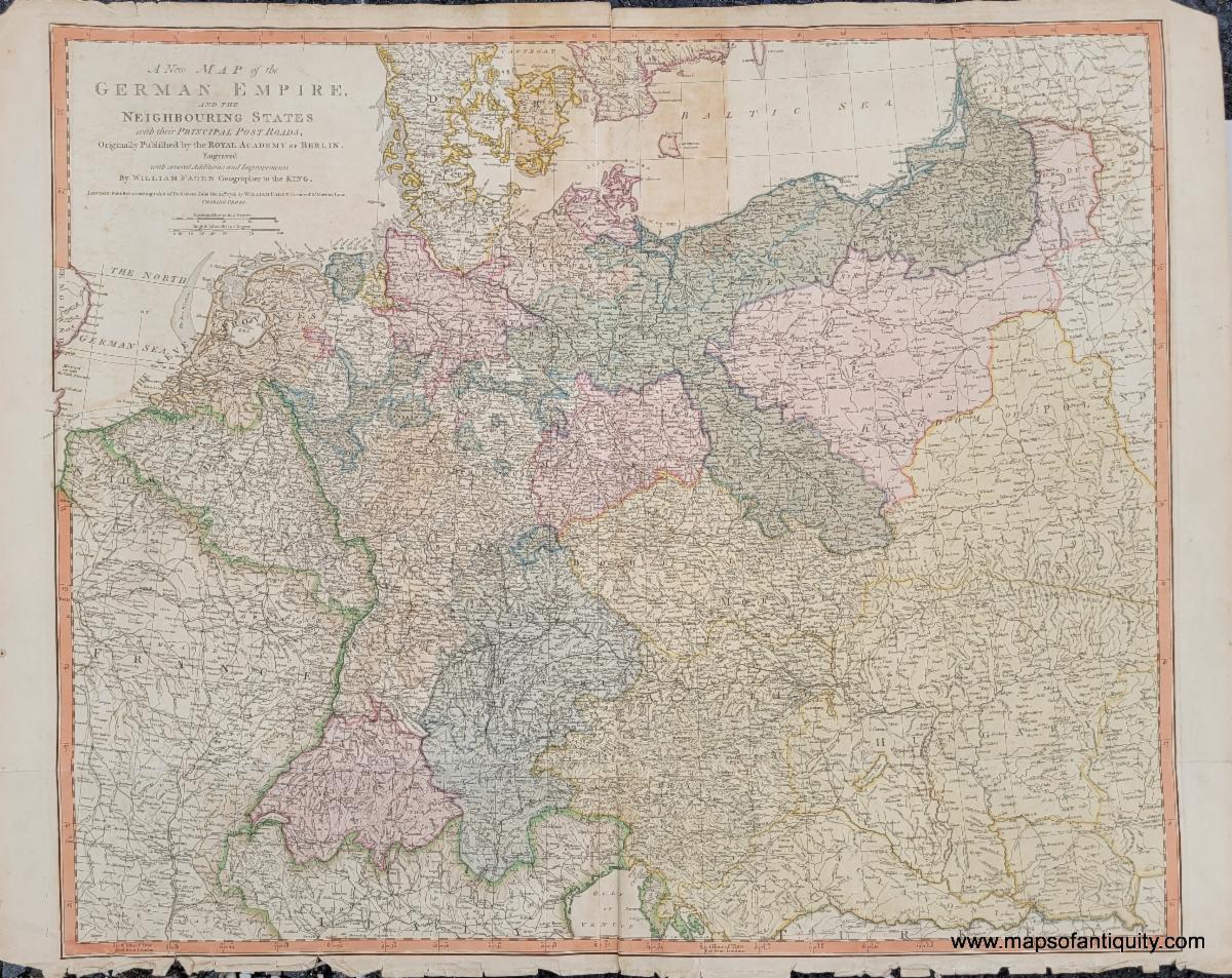 1788 - A New Map of the German Empire, and the Neighbouring States with their Principal Post Roads… - Antique Map