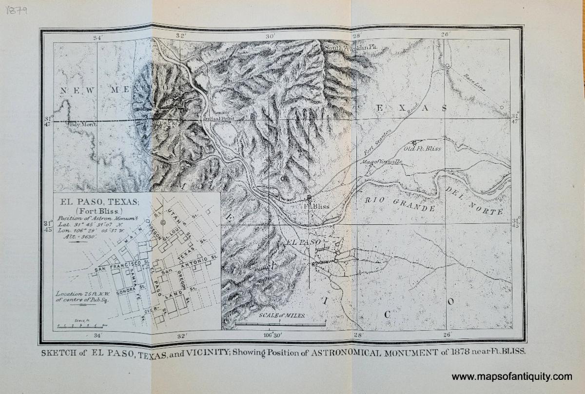 1879 - Sketch of El Paso, Texas, and Vicinity; Showing Position of Astronomical Monument of 1878 near Ft. Bliss - Antique Map