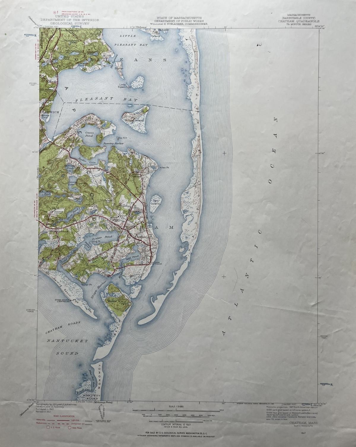 1947 - Chatham, Mass. Cape Cod Antique Topographic Map - Antique Map