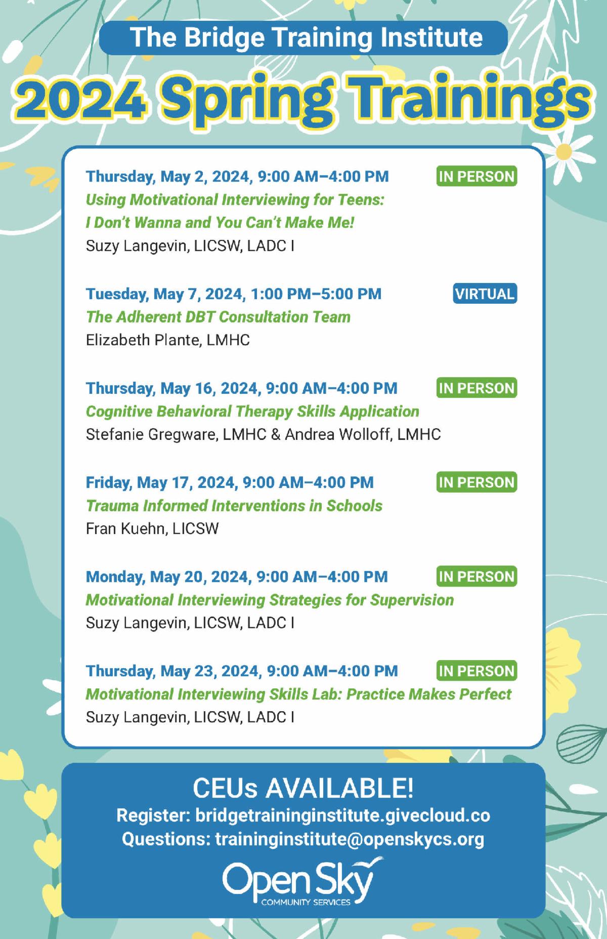 Have additional feedback or ideas for future newsletters? Let us know at info@openskycs.org
