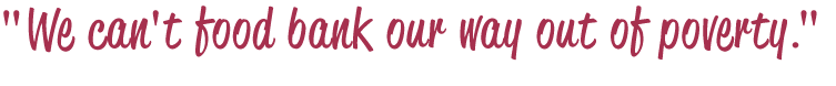 “We can’t food bank our way out of poverty” is a quote I came by some time ago and I believe it’s correct, though not every food bank employee or volunteer agrees with that statement. It doesn’t mean we aren’t essential. Sadly, food banks meet a critical need for far too many food-insecure households. We can help with one of the symptoms of poverty—hunger—for the day or week of a client’s visit, but we are unlikely to help that household move out of poverty. Ending poverty will be a very long journey that will involve all sectors of society, and will require massive change to many systems.