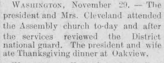 “In acknowledgment of all that God has done for us as a nation, and to the end that on an appointed day the united prayers and praise of a grateful country may reach the throne of grace, I, Grover Cleveland, President of the United States, do hereby designate and set apart Thursday, the 29th day of November instant, as a day of thanksgiving and prayer, to be kept and observed throughout the land.