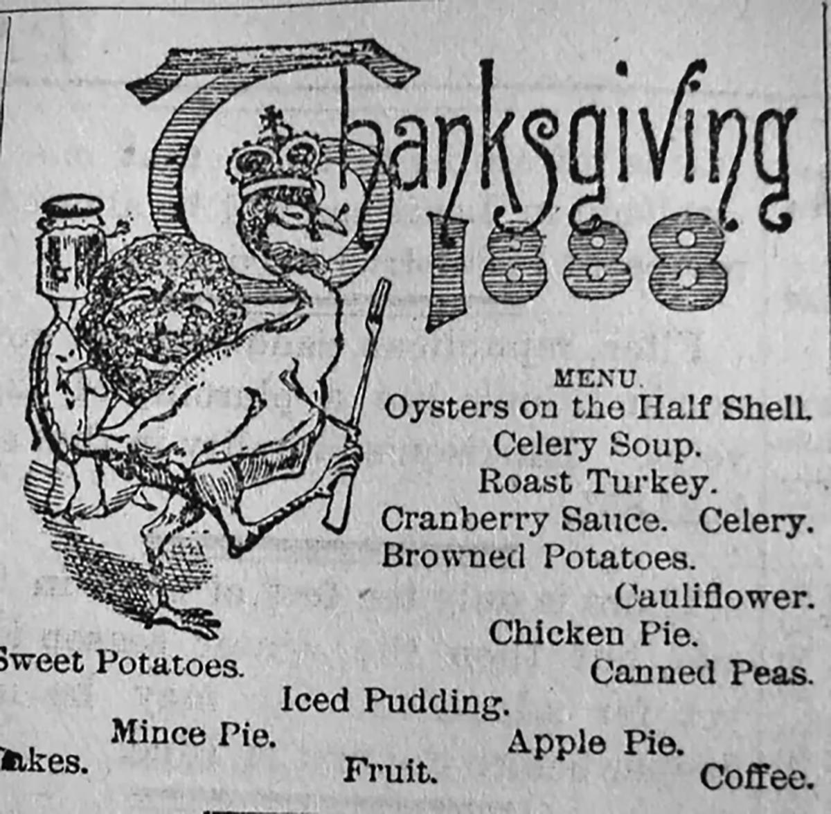 “WELL, Thanksgiving is here, and ye editor will have to skirmish among his neighbors for a turkey dinner or go without--every one of our delinquent subscribers having apparently forgotten that we enjoy a piece of roast gobbler just the same as ordinary people. Wish some of those people who are continually urging us to keep booming the country would engage in the poultry business.”