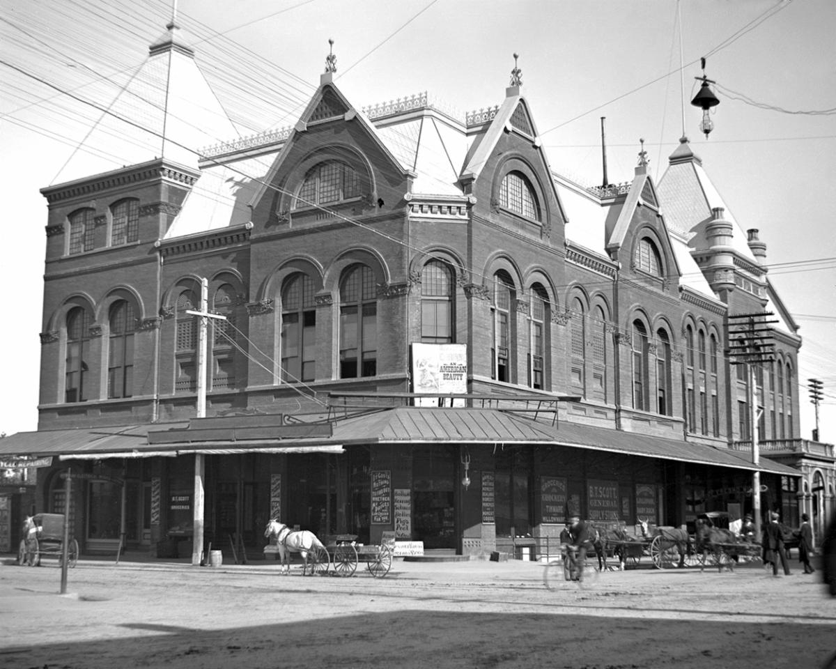 Opened on September 29, 1890 by Robert Barton, a local vineyardist, the Barton Opera House was a state-of-the-art facility. Located at the northeast corner of Fresno and J (Fulton) streets, the Opera House had a capacity of 1,600 seats and a plush interior with many small lights on the high-domed ceiling. The box seats on each side of the stage were lavishly decorated. The three-story building was also occupied by the Fresno Armory.
