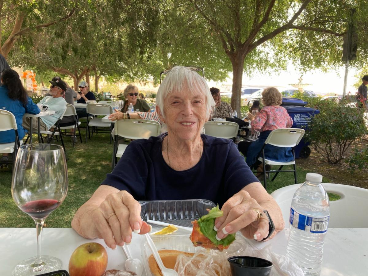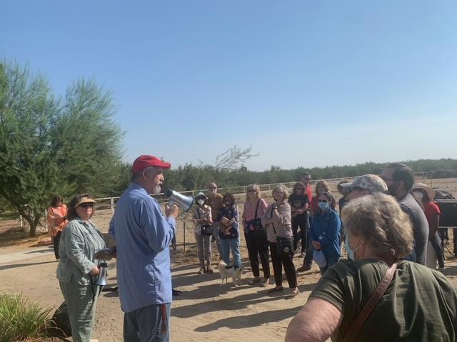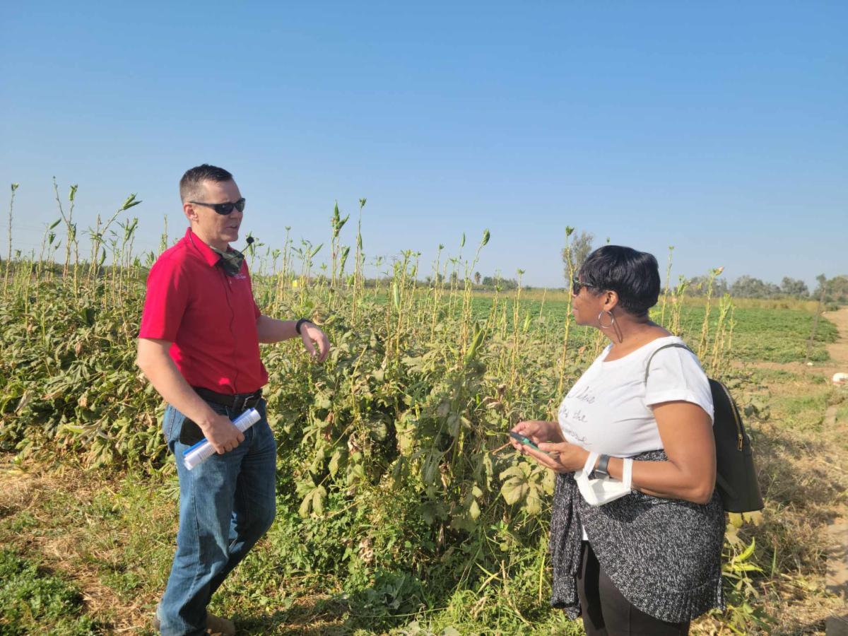 Destinations included a visit to the African American Farmers of California's Demo Site, where gleaning okra in the field was a highlight. During the visit to VF&B Farms, Paul Betancourt shared personal stories of his experiences growing almonds in Kerman and how farming has changed over the decades. The last stop at Solitary Cellars on Sumner Peck Ranch was a treat complete with lunch and a three flight wine tasting before strolling down to the river on a guided tour led by Candice Hill-Troutman, FCHS's Tour Director.