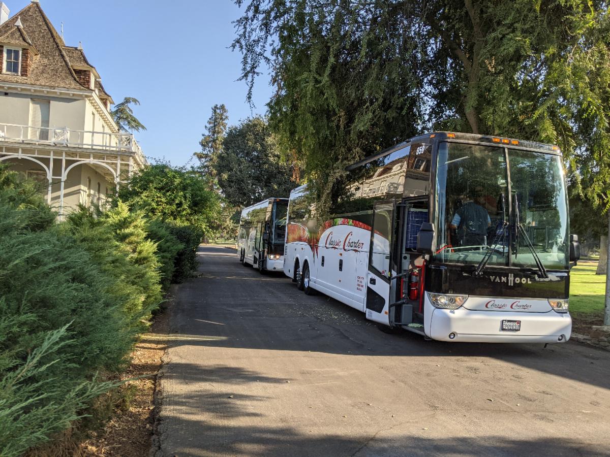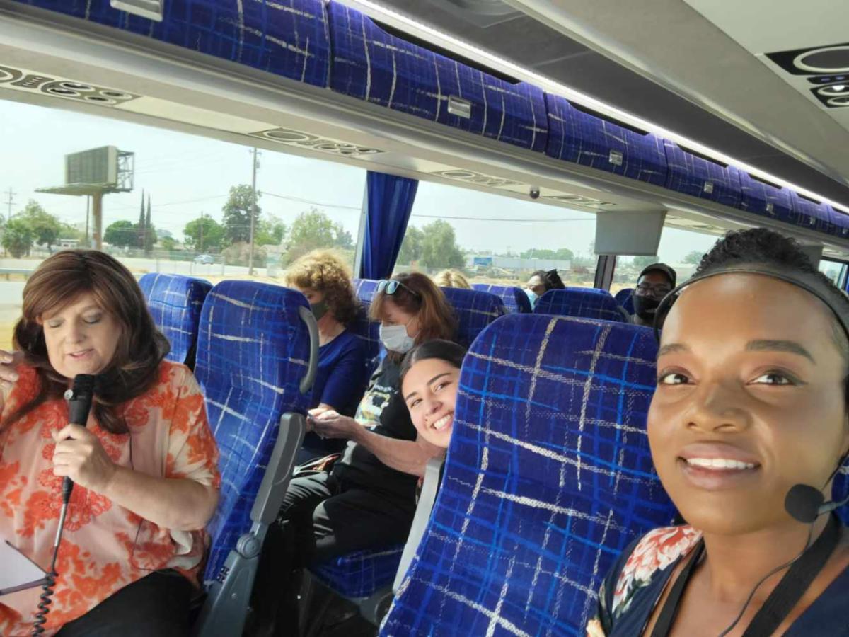 Guests enjoyed a continental breakfast with a tour of Kearney Mansion before boarding a luxury coach tour bus for three stops in Fresno County. Along the way, Ryan Jacobson, Executive Director of the Fresno County Farm Bureau, talked agri-business during a Q&A along with Elizabeth Laval, President of the Fresno County Historical Society, who shared the history of agriculture in the Valley.