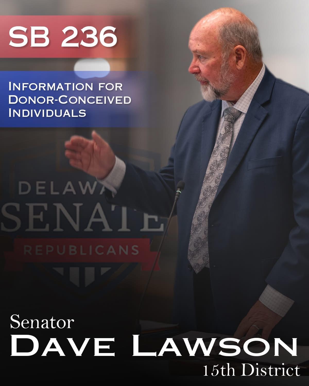 DOVER, DE – On Thursday, the Delaware State Senate passed Senate Bill 236, legislation sponsored by Senator Dave Lawson (R-Marydel) to improve access to important medical and genetic information for donor-conceived individuals and their families.