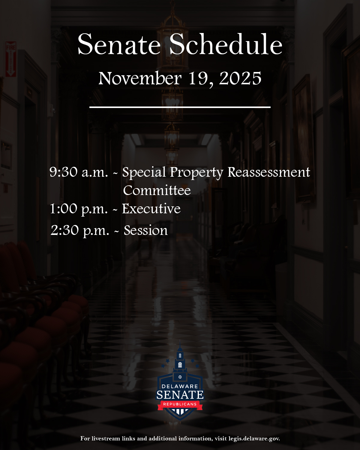 Prior to session, the Special Property Reassessment Committee will meet at 9:30 a.m. followed by the Senate Executive Committee at 1:00 p.m.