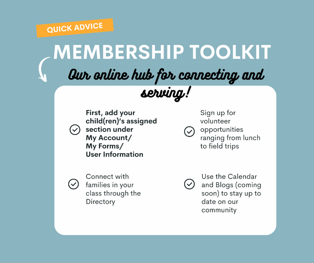Membership ToolKit is our one-stop shop for volunteering and connecting with other families through the schoolwide directory.