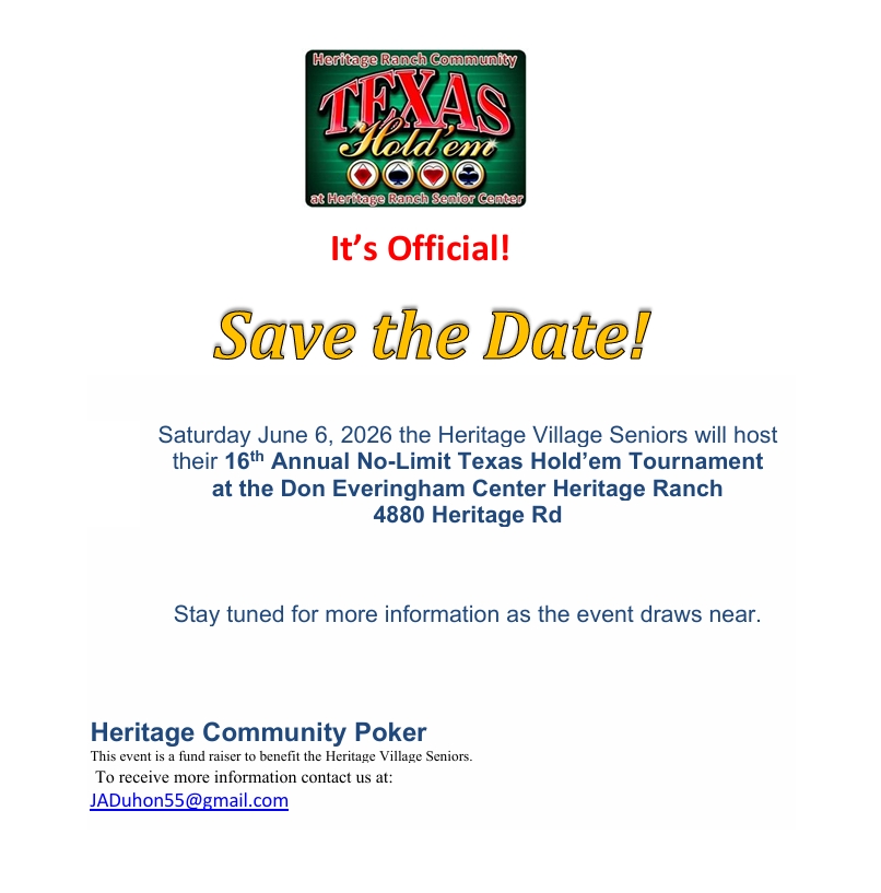 As a reminder, any work done to the exterior of your home or property—such as concrete pours, certain landscaping, sheds, painting🎨, roofing, fencing, siding, and tree work🌳 —must receive approval from the Architectural & Environmental Control (AEC) Committee through the Heritage Ranch Owners Association (HROA).