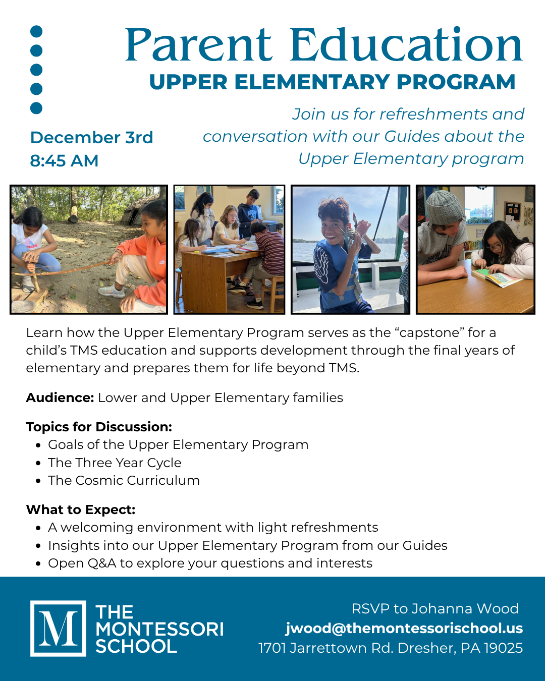 Dec 3: Upper Elementary Program Info Session @ 8:45 AM