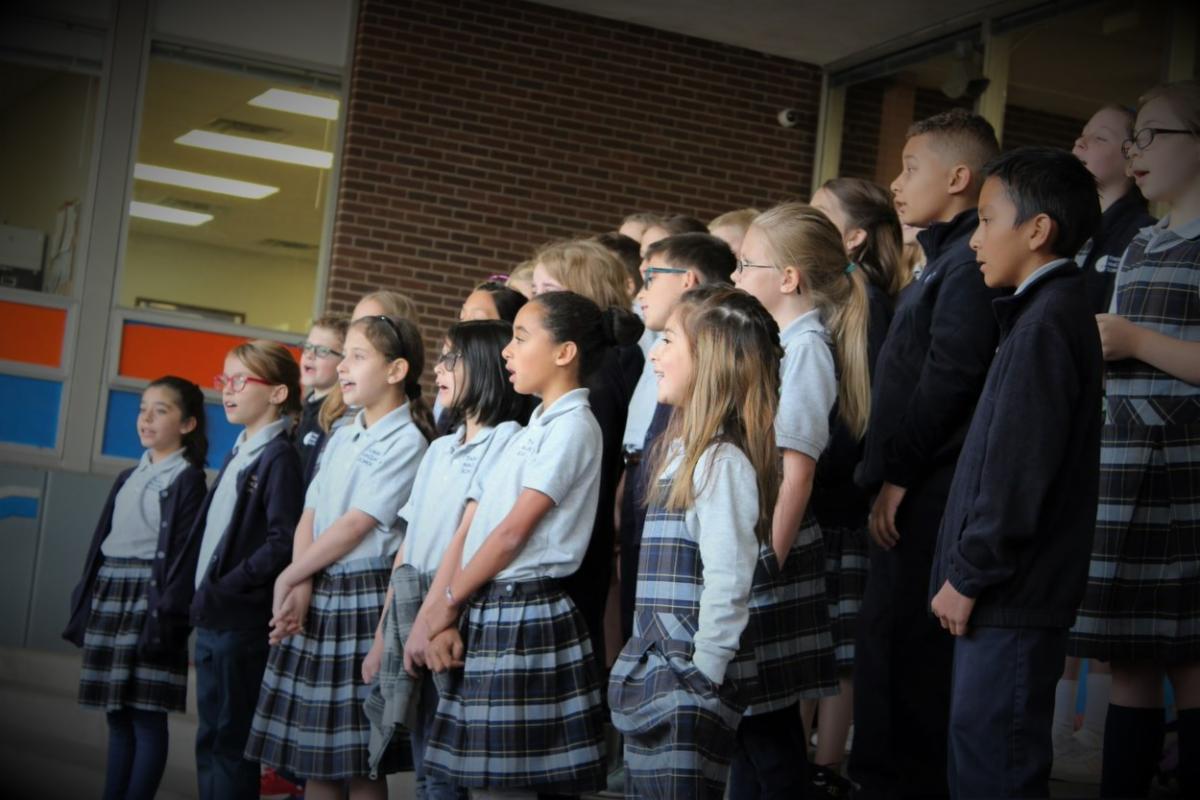 Fifth-grade students will be singing during morning assembly on November 14. Students need to arrive by 7:30 a.m. in order to warm up in the small gym.