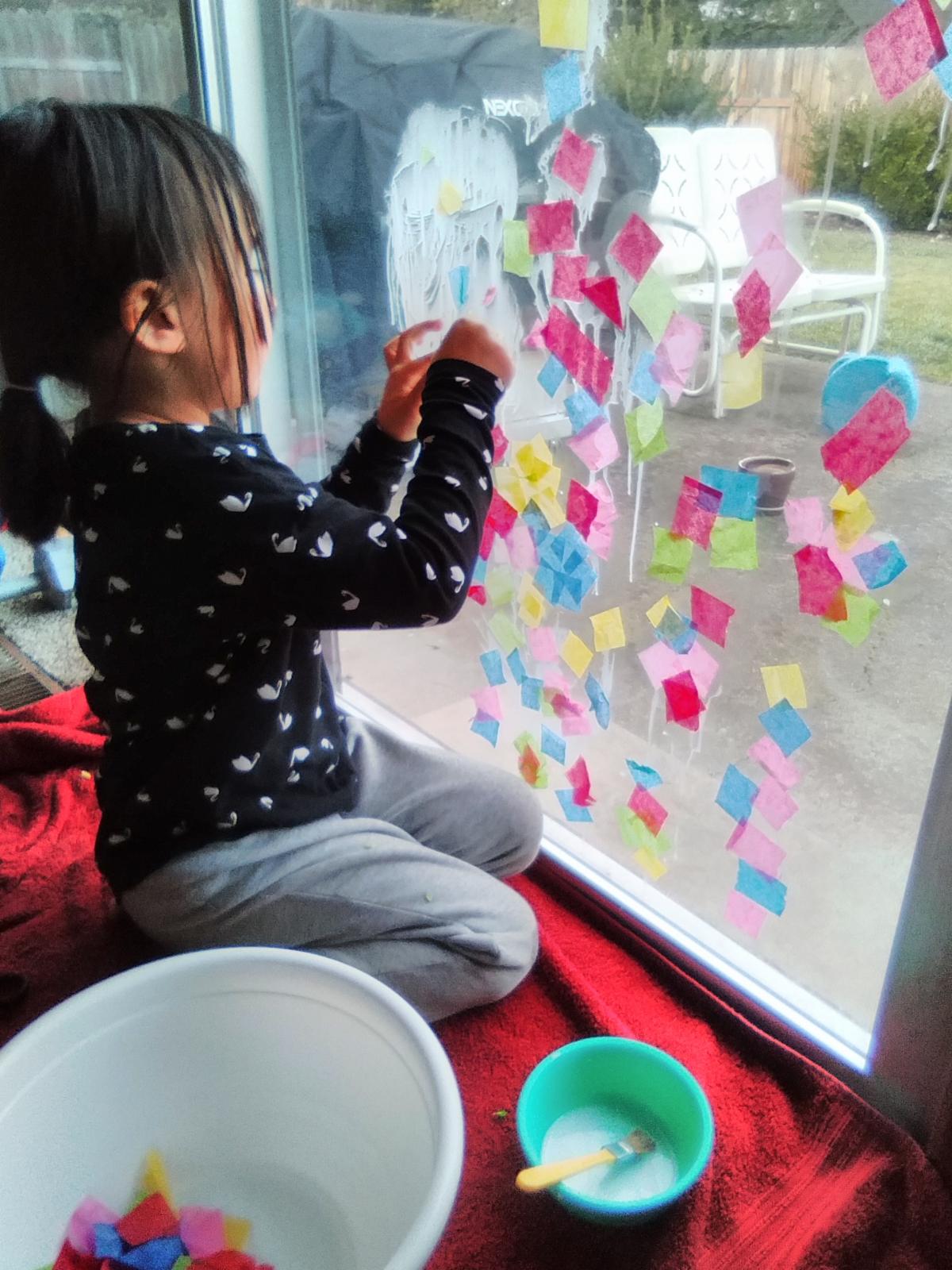 Weekly reminder! Please take pictures of your child doing the various online school activities at home, like this one of Kindergartner, Aeon Folsom working on her stained glass window activity.