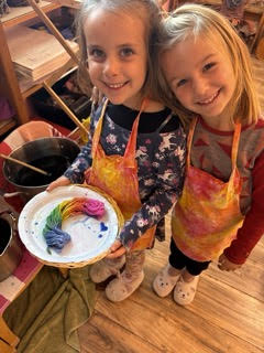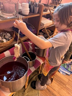 1. We hand dye our very own skein of yarn. It is magical to see a rainbow appear after dipping the yarn into red, yellow, and blue dye!