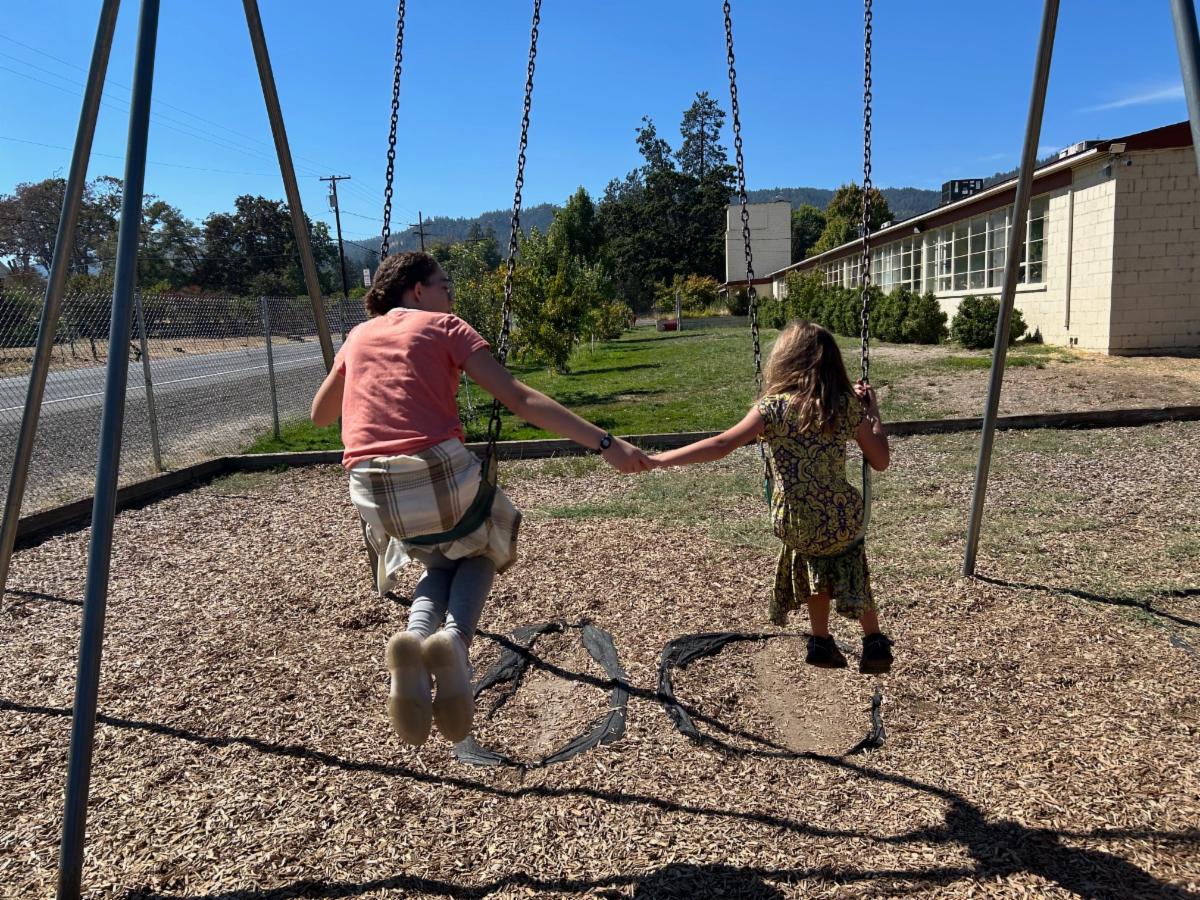 Those of you who have teenagers know that their attitudes can sometimes be, well... challenging. So you can imagine our hearts melting when we watch these sometime jaded teenagers soften to silk in the presence of the sparkling cherubs who are their first grade buddies. I consistently get asked the same question on trails by stunned hikers, as they encounter 50 some first and eighth graders laughing merrily and traipsing down the path together, "What school are you guys from?" When I think about the state of the average middle schooler in America in 2025, I can't imagine a better advertisement for what we do here at Madrone Trail than seeing our eighth graders soothe an "Owie" or allow themselves to be beaten in a race against a six year old. It's pretty magical.