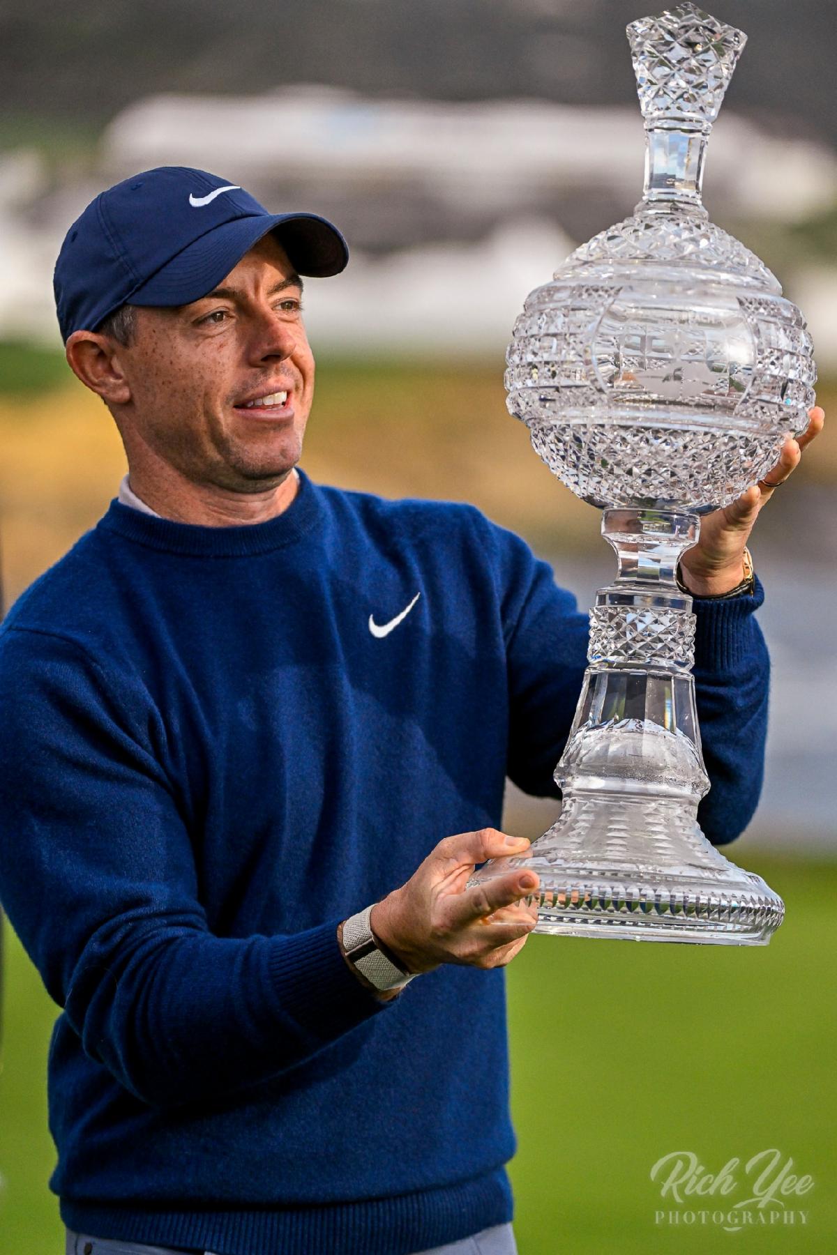 Tournament champion, the popular Rory McIlroy (Northern Ireland) hoists the Winner's Trophy. Later, he will hoist his