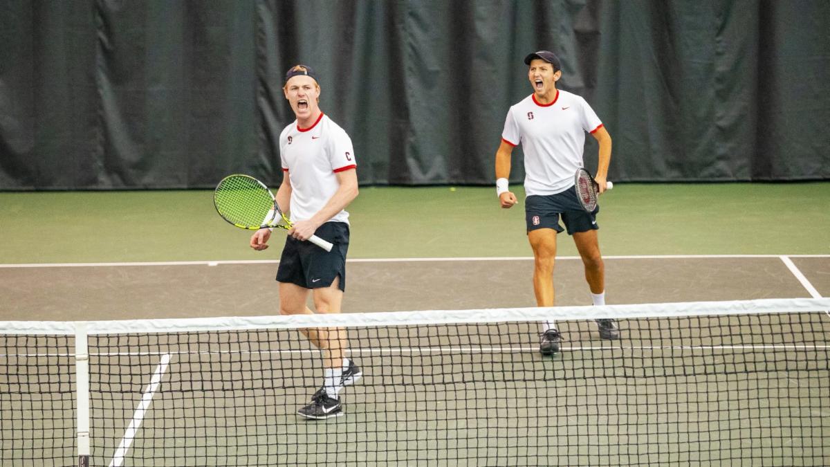 Stanford struck first in doubles, taking a 1-0 lead after picking up victories on courts one and three. Nico Godsick and Henry von der Schulenburg started the afternoon with a 6-3 win in the third position, while Max Basing and Kyle Kang clinched the early lead with a 6-3 win on court one.