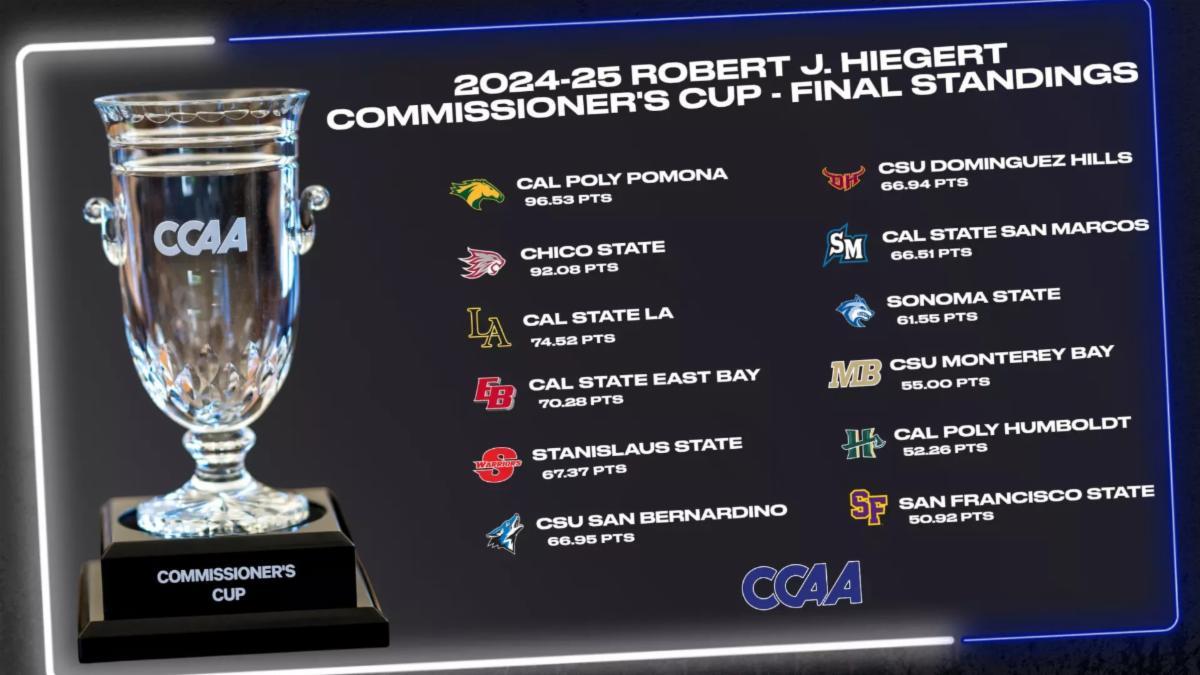 ALISO VIEJO, Calif. - With the 2024-25 athletic year complete in NCAA Division II, the CCAA announced its final standings for the year for the Robert J. Hiegert Commissioner's Cup. Since joining the CCAA, Cal State East Bay had its highest finish in department history, placing fourth among the 12 CCAA member institutions.