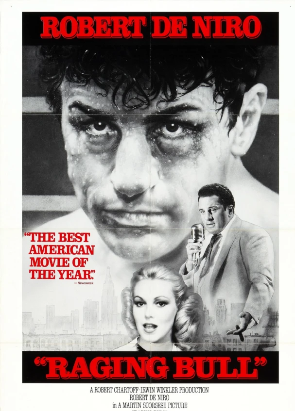 4. Raging Bull, 1980: De Niro, once again, as Jake LaMotta, the thuggish middleweight boxing champion, in an epic film directed by Martin Scorcese. Wonderfully shot in black and white, with De Niro truly believable as a boxer, before he put on 50-60 pounds to play La Motta as a retired pugilist. Then he took it all off; now that is some acting.