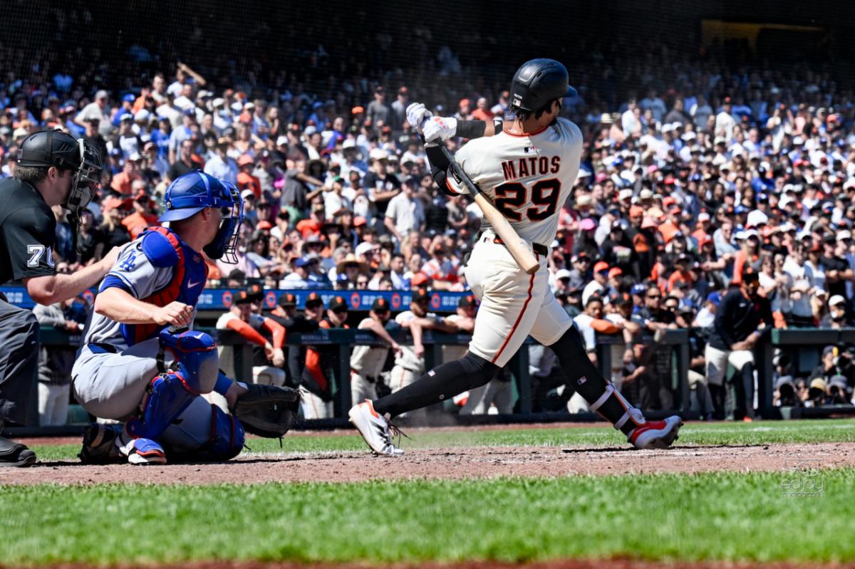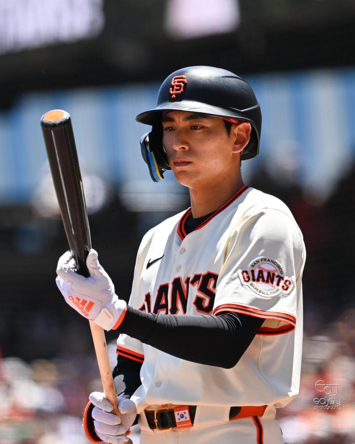 | San Francisco pitcher Justin Verlander was hoping for his first win of the season, but with the Giants held scoreless, his record fell to 0-7. The visiting Philadelphia Phillies avoided a sweep by winning 13-0 on Wednesday afternoon, July 9. Photo and caption by Ed Jay. | Jung Hoo Lee had an off-day, only getting on base once with a walk. His BA is now .245. The Giants overall were only able to garner four hits for the entire game. Photo and caption by Ed Jay. | |
