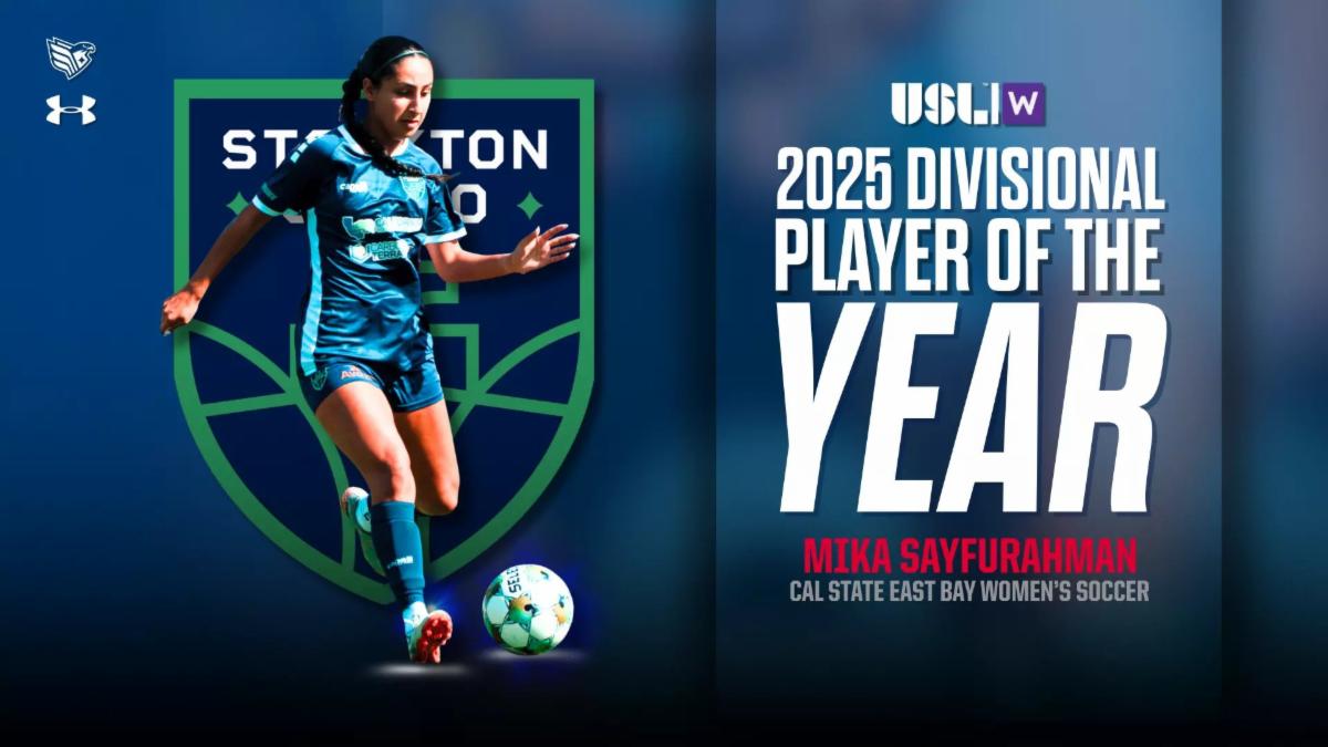 TAMPA, Fla. – The USL W announced several awards for its 2025 season this week. Mika Sayfurahman, from Cal State East Bay women's soccer, has added to her collection as a Pioneer with a pair of honors as a member of Stockton Cargo SC, a member club in the USL W NorCal Division. For her outstanding 2025 season with Stockton, Sayfurahman was named USL W NorCal Division Player of the Year and All-League First Team.