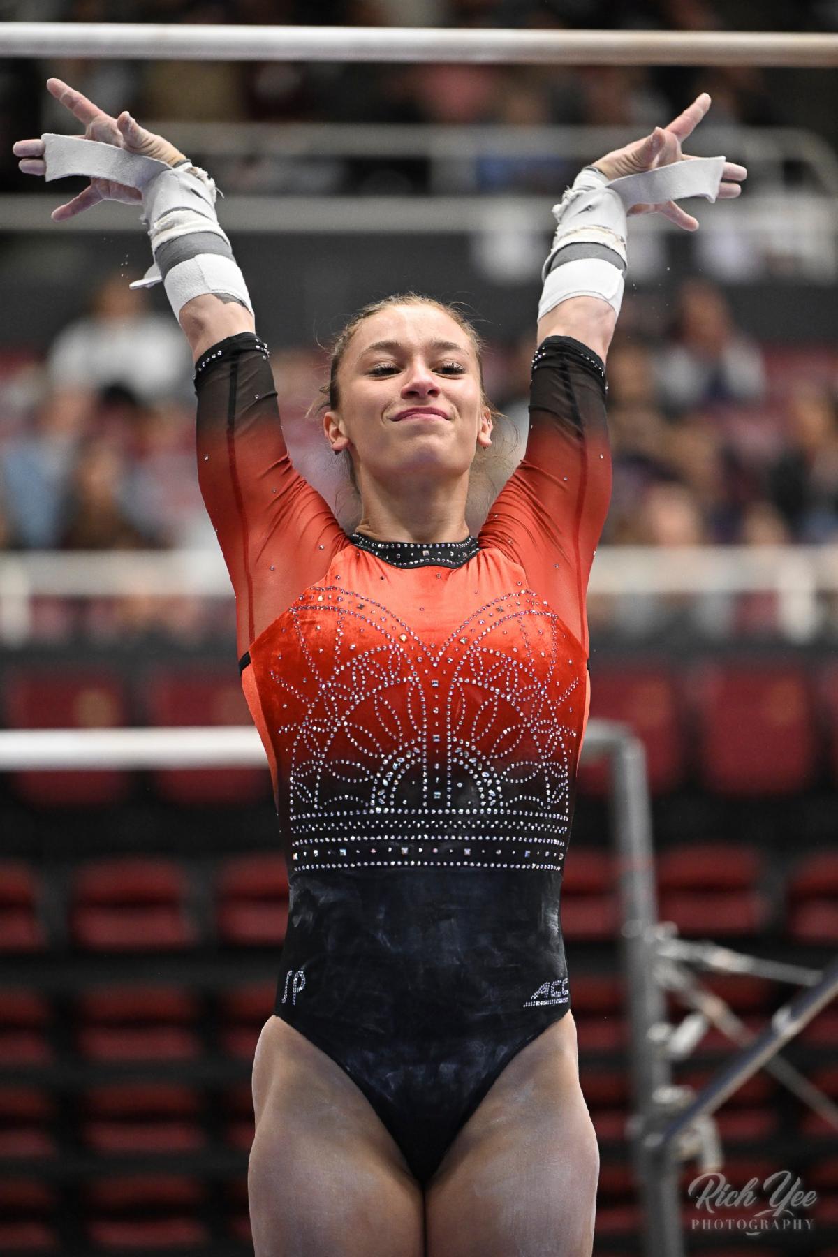 FORT WORTH – The No. 20 California women's gymnastics squad (9-4, 3-1 ACC) took second place at the Metroplex Challenge in Fort Worth with a 196.850 overall score, outscoring No. 10 Stanford (196.400) and No. 42 Air Force (195.750) and falling to No. 8 Georgia (197.650). Golden Bears Tonya Paulsson and Annalise Newman-Achee tied for bronze in the all-around with scores of 39.475, which is a personal-best for both gymnasts.