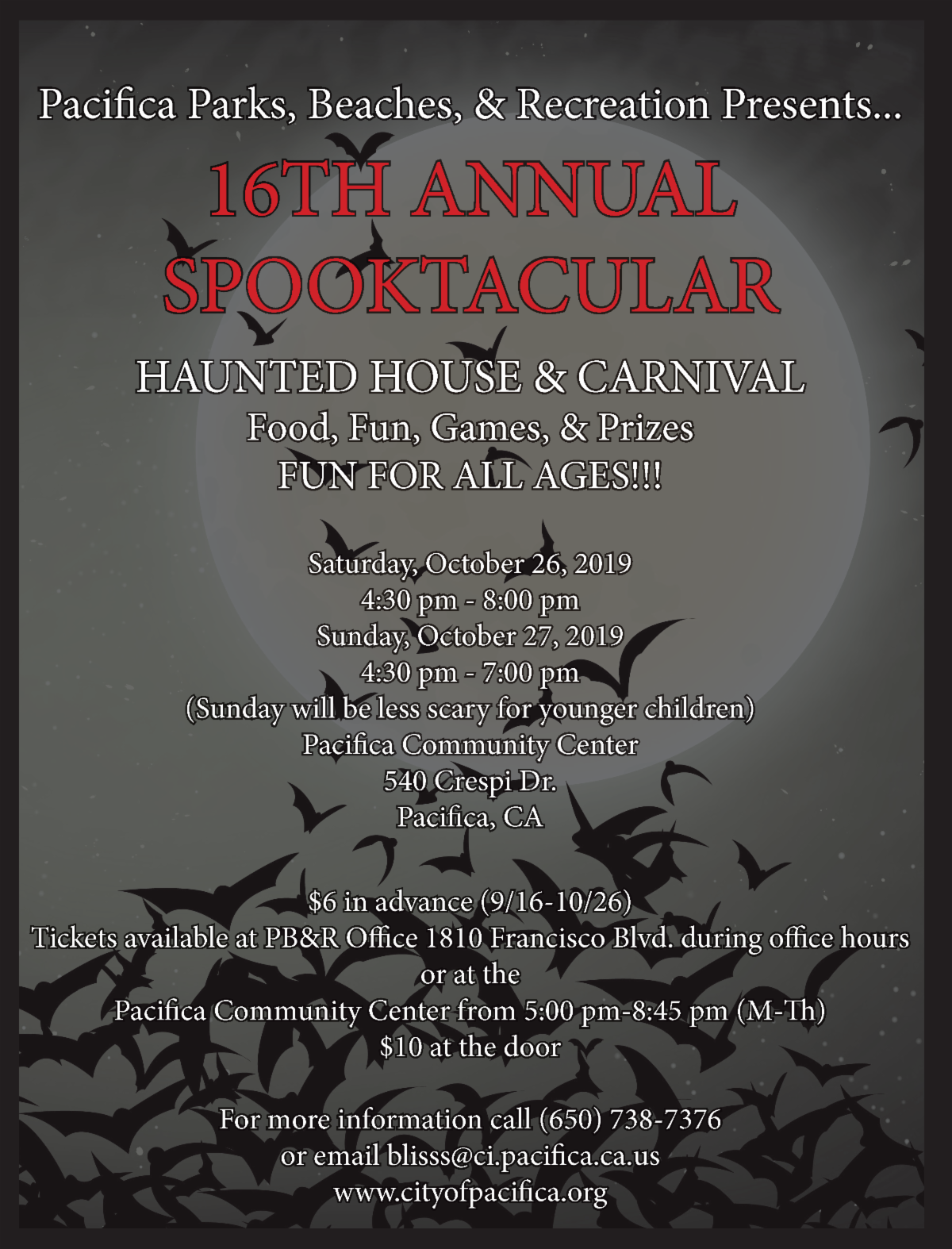 October 26th-27th 4:30pm | Pacifica Community Center, 540 Crespi Dr