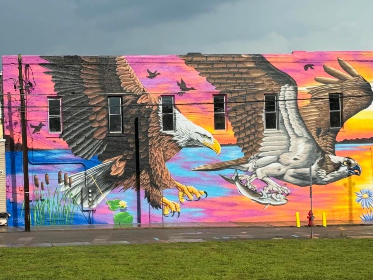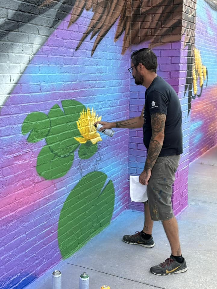 Sequoia Whitmer, manager of Blossoms & Blooms Boutique, contacted Justin Suarez, an aerosol and fine artist from Rochester, New York, and commissioned him for the project in October of 2023. The mural project was kick started through a $10,000 grant from a local manufacturing company, Molded Fiber Glass. Additional funding was raised by donations from community members, businesses, family, and friends. Sequoia wanted the mural theme to stem from the nature of Linesville. Justin was the perfect fit, as he has over 20 years of experience painting large-scale wildlife murals across the US! The most notable part of this project is the impact it has already had upon the Linesville community. The building on which the mural has been painted is highly visible. The mural has changed the ambience for those traveling east on PA Route 6, and has certainly given Linesville a sense of hometown pride. | |