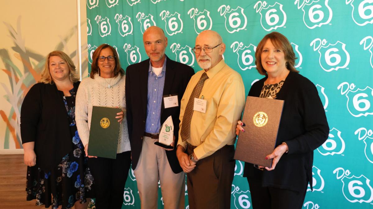 Left to right: Jason Krise (PA Route 6 Board Member), Dan Glotz (PA Route 6 Board President), Melinda Meyer (PA Route 6 Board Member) accepting award on behalf of Fort LeBoeuf Historical Society, Candace Hillyard (PA Route 6 Board Executive Director)