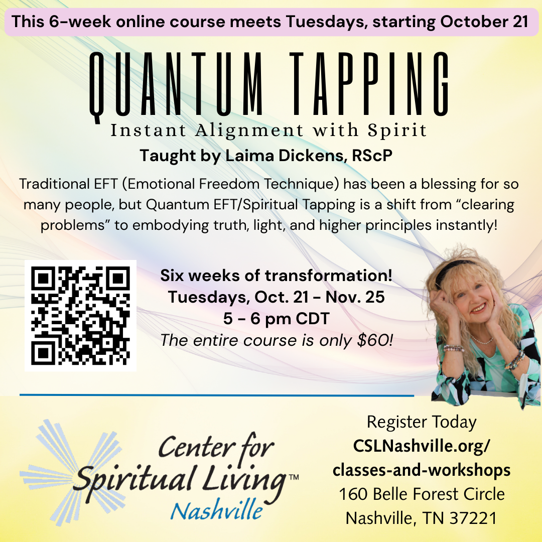 I give thanks for Love expressing in my Life. I give thanks for the Science of Mind teaching. I give thanks for everyone who is actively working and supporting our vibrant, loving, abundant Community of CSL Nashville.
