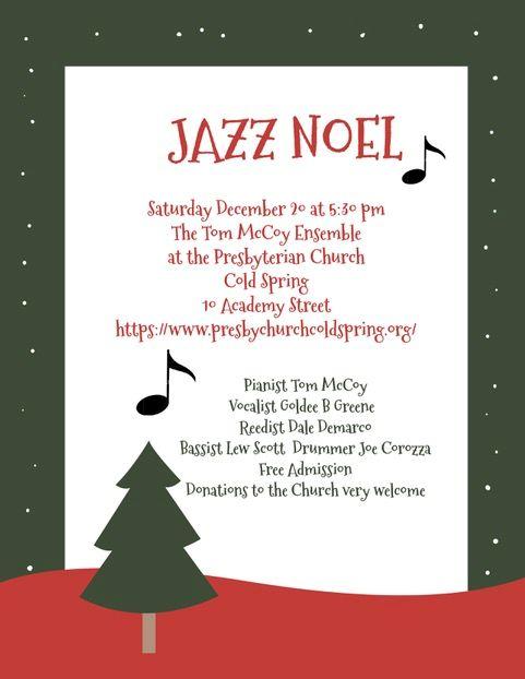 Saturday, December 20 at 5:30 pm - "Jazz Noel" featuring Tom McCoy and musical guests, followed by a festive reception