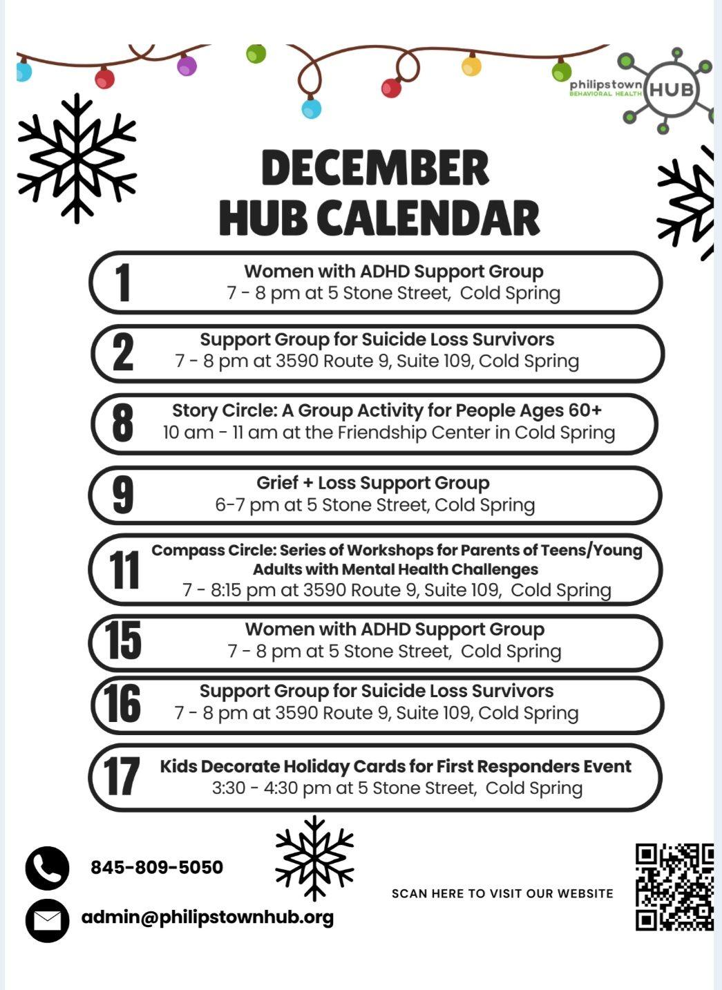 | | December Programs at the Philipstown Behavioral Health Hub: | |