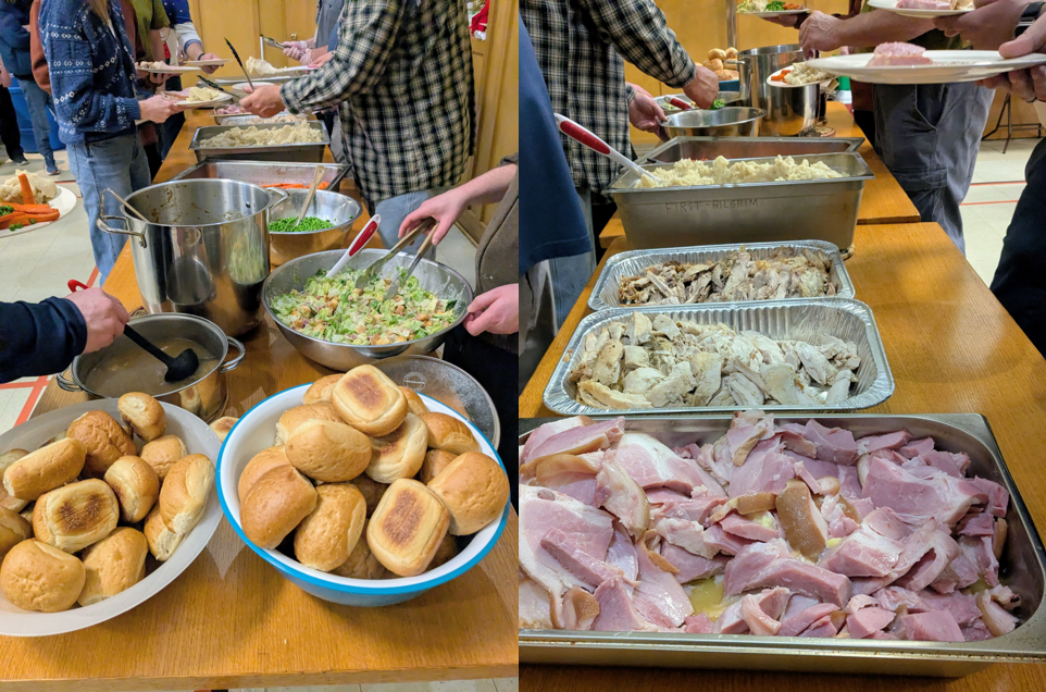 SO MUCH FOOD! After all had filled containers to bring the extras home, Kevin was still able to share food with the Keele Center.