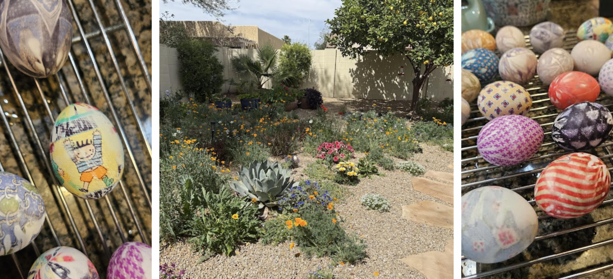 So far this month we’ve had a Spring Garden Luncheon (pictured), A Heard Museum Curator’s Tour, Line Dancing Lessons, Tie-Dyed Easter Eggs (pictured), and an EFT workshop. There is still time to join in a couple events this month: